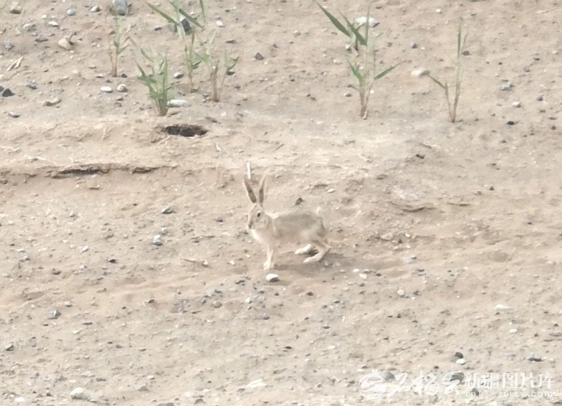 4月17日,记者在莎车县中水库生态林基地用手机拍摄到一只野兔。石榴云/新疆日报记者 曹华摄