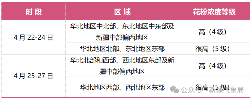 此外,国家卫生健康委、中国气象局4月21日18时联合发布未来一周花粉浓度预报服务提示:未来一周,我区部分地区的花粉浓度处于较高的等级,建议花粉过敏人群外出时可佩戴口罩、护目镜等,做好物理阻隔,回家后及时清洗鼻腔与更换衣物。