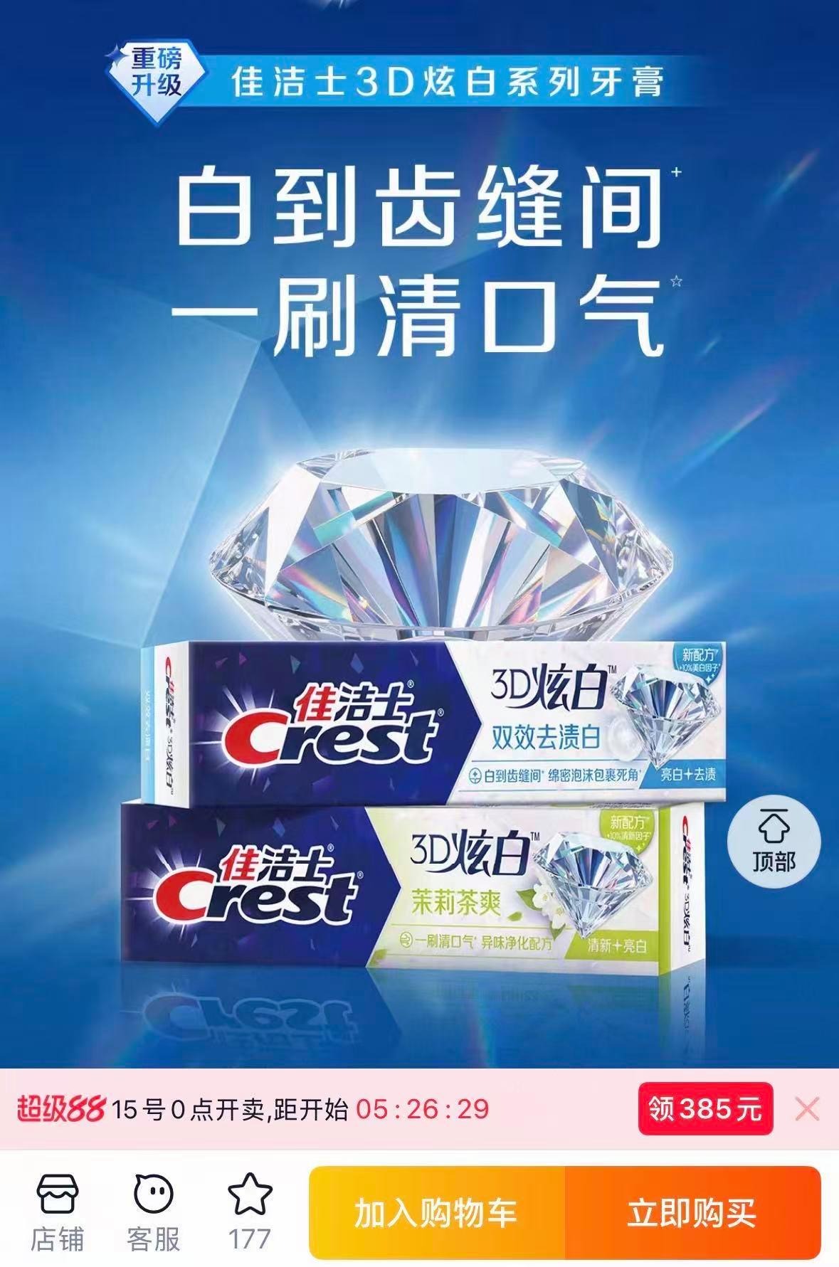 由于佳洁士为宝洁旗下品牌,记者又就“锁白”系列询问宝洁店铺客服,对方表示:“是可以美白牙齿的,锁白是这个系列的名称。”至于“3D炫白”系列,客服称:“3D炫白是商品名称,分多个规格,不同规格侧重不同。”