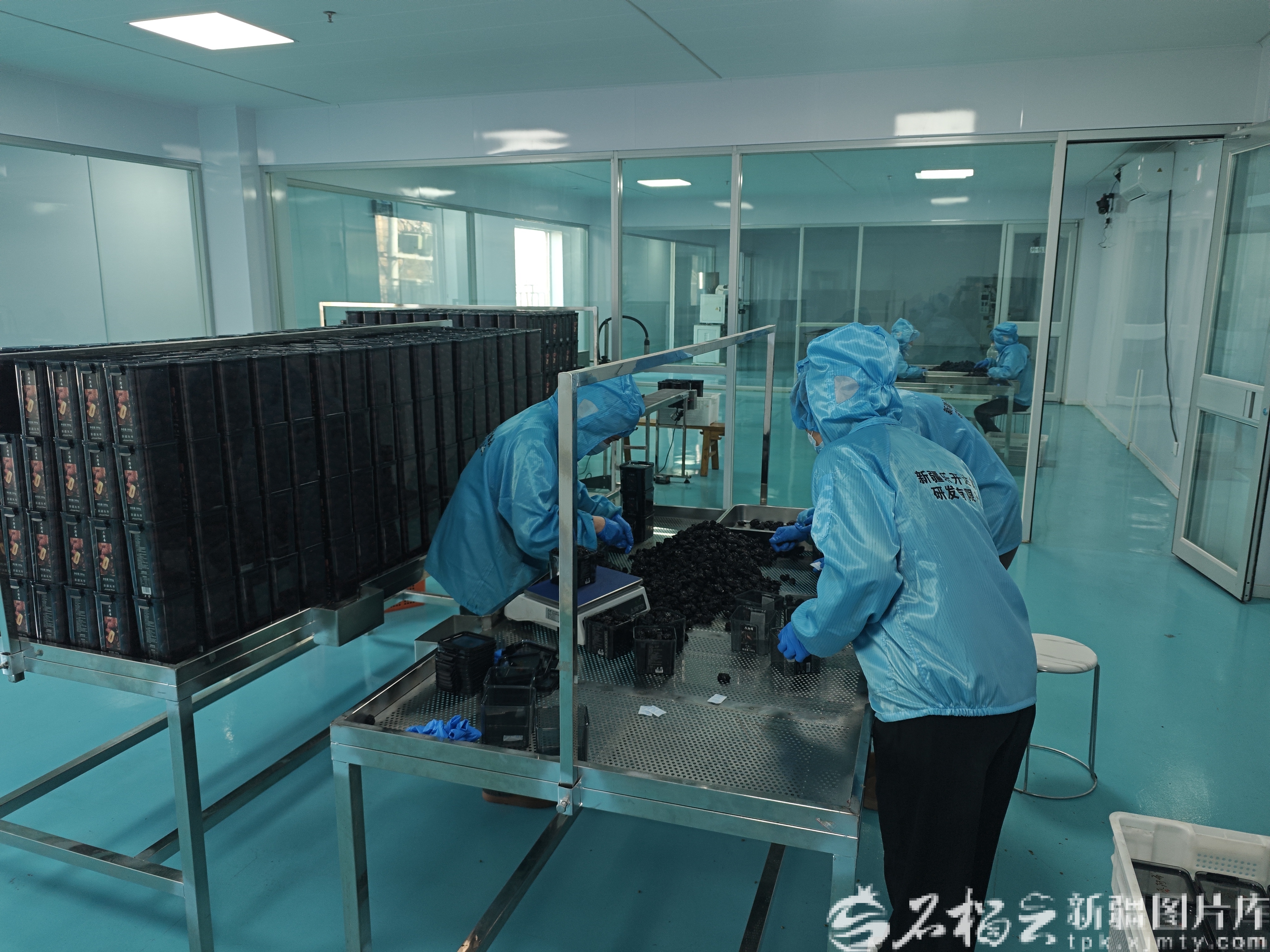 新疆乐开达食品研发有限公司加工厂内,工人们在加工葡萄干。阿不杜萨拉木·阿不杜克然木摄