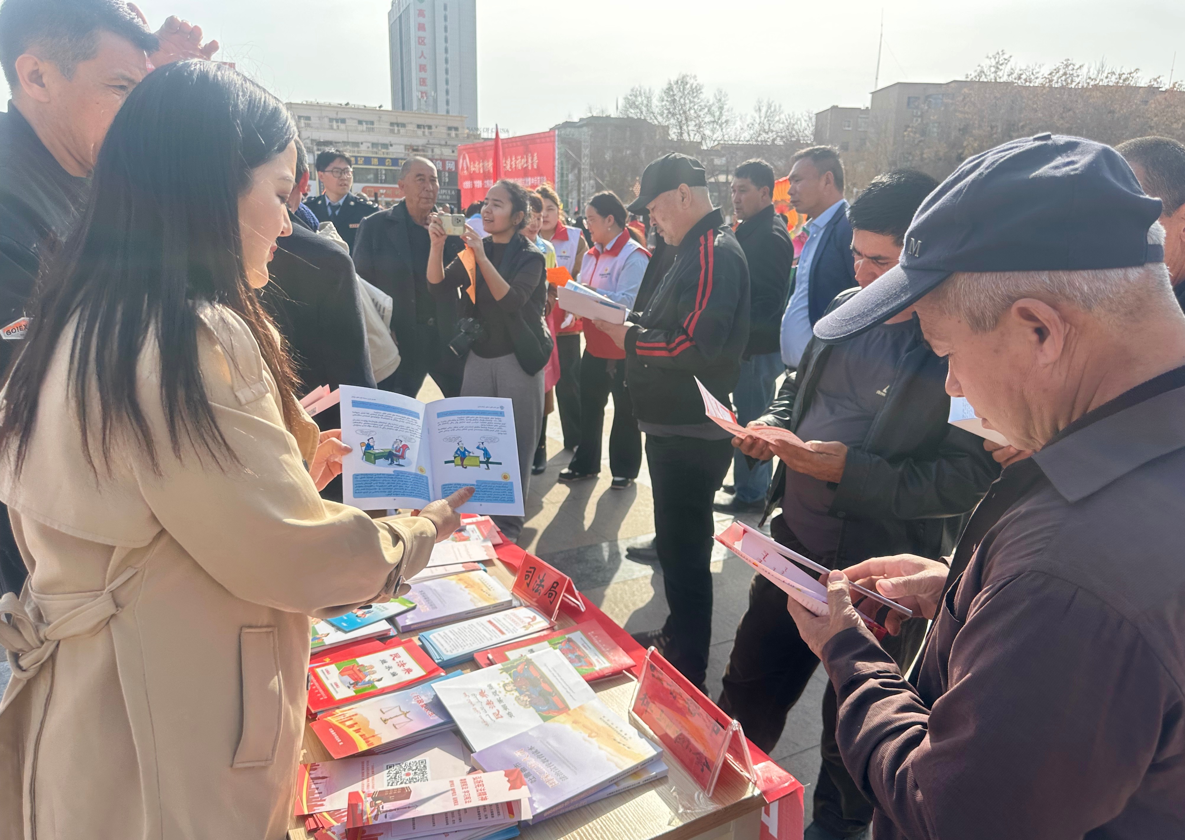 3月5日下午,依托吐鲁番市旅游文化广场人气旺、辐射广的优势,高昌区法学会联合司法局、检察院、法院等会员单位在基层服务站点搭起“法治服务台”。工作人员向群众普及妇女维权、反家暴、反诈防骗等法律知识,耐心解答婚姻家庭、邻里纠纷等咨询,把专业法律语言转化为通俗易懂的“家常话”,活动现场共发放《中华人民共和国民法典》婚姻家庭编、合同编等宣传资料300余份,解答群众法律咨询20余人次。