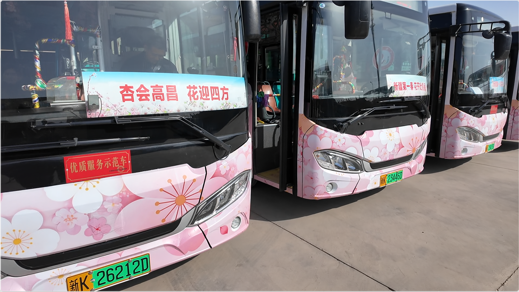 吐鲁番昌安公共交通有限公司副经理田云飞介绍:“杏花季期间,杏花巴士和电音巴士在3月20日至4月10日运营。杏花巴士有两条专线,分别从吐鲁番北站、老城路青年路路口发往亚尔镇上湖村,每半小时一班;电音巴士每日21:00至24:00运营,覆盖出发点旅游文化广场、人工湖、广汇小区、御恒公馆、葡萄夜市、知夜、西游夜市,最终返回旅游文化广场。杏花巴士票价均为5元,电音巴士免费,市民、游客可就近乘车。”