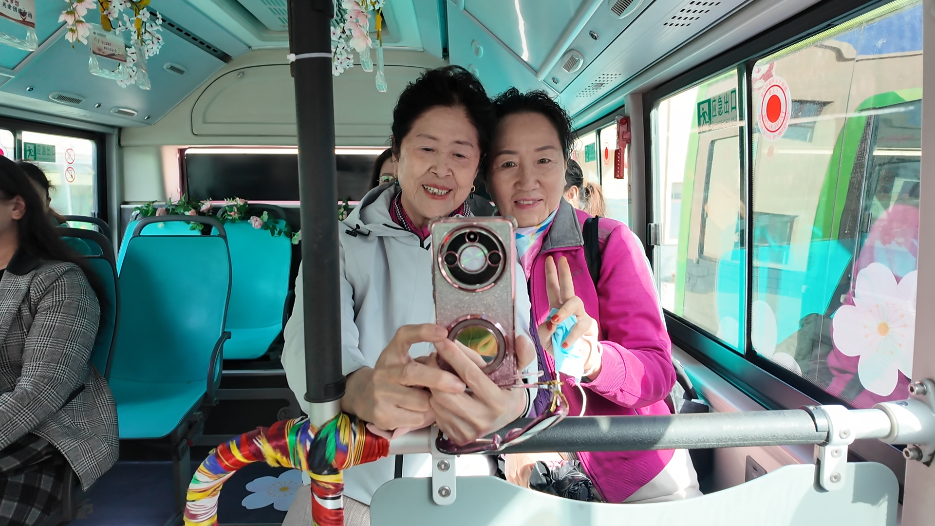 乘客在杏花巴士上打卡拍照。胡源 摄