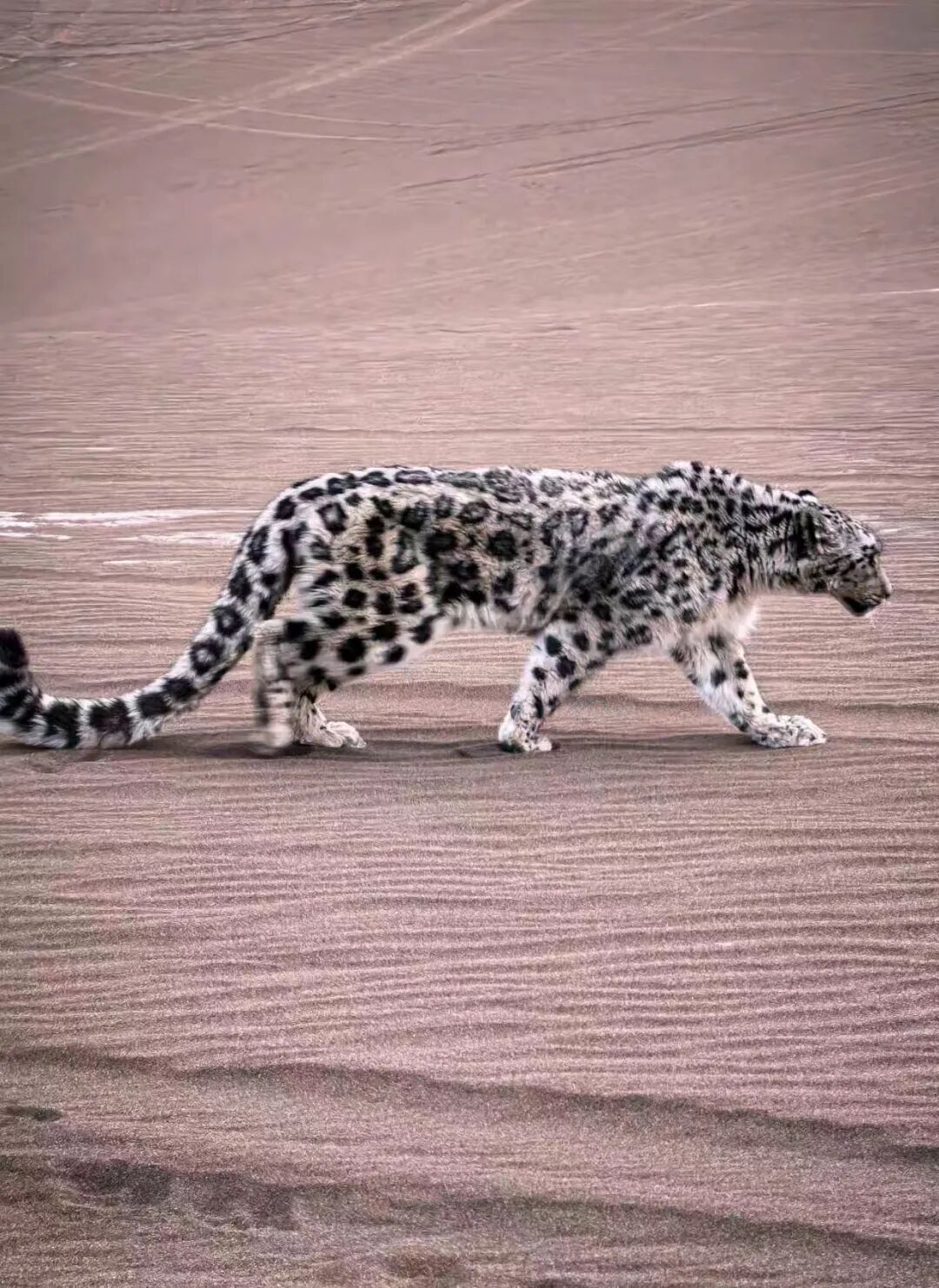 据悉,此次雪豹现身沙漠实属罕见。雪豹作为国家一级保护动物,常年栖息于高山裸岩区域,此次成功救助,为这只雪豹提供了及时有效的保护。