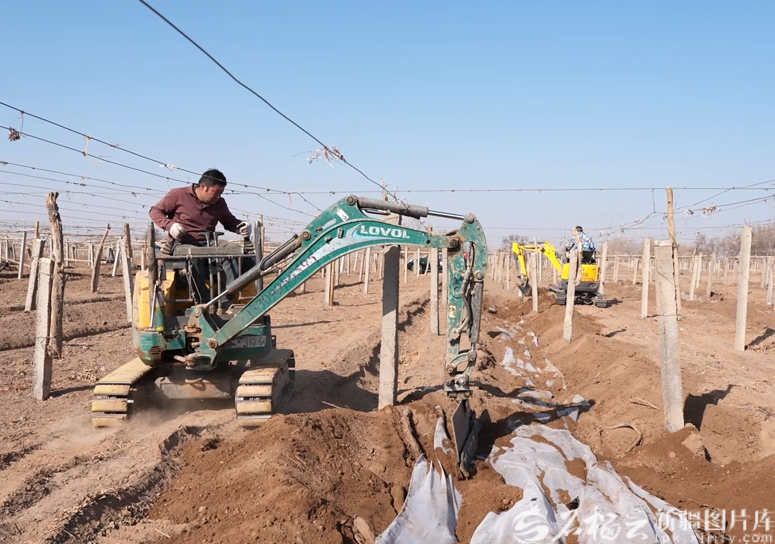 近日,吐鲁番市高昌区三堡乡种植户使用机械进行葡萄开墩作业。阿地力·阿力米提 摄