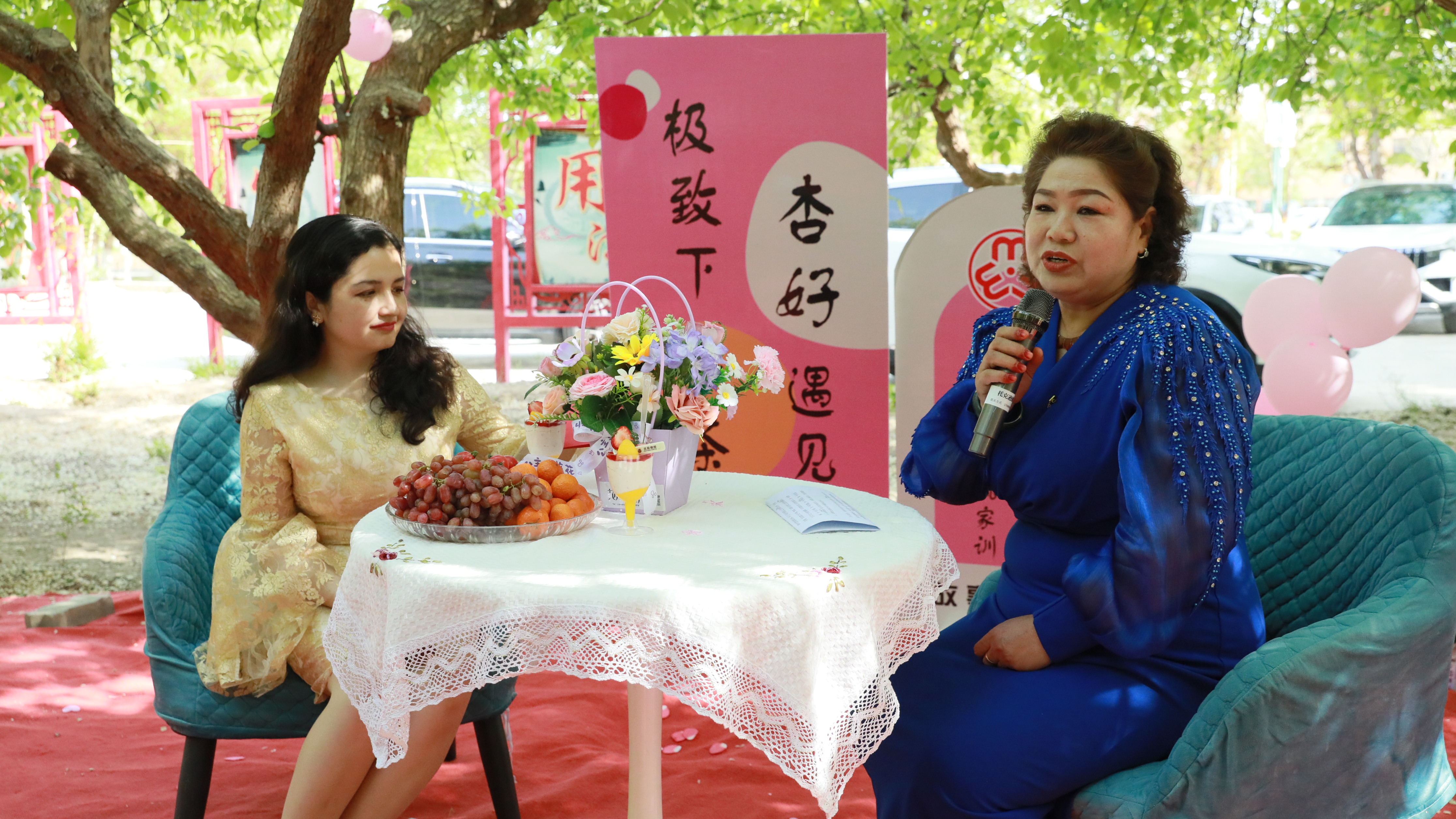 春和景明,吐鲁番托克逊的杏花开得正盛。4月10日,滨河社区法治公园里,一场别开生面的家风故事分享会正在进行。杏花树下,桌椅依着树荫错落排开,坎儿井水冲泡的桑葚茶冒着热气,当地杏干和馕点摆满桌角。居民们三五一桌围坐在树下,一边品着下午茶,一边听着台上的分享——11位普通而又特别的女性将依次登台讲述身边事,她们是这场“极致下午茶”的主角。