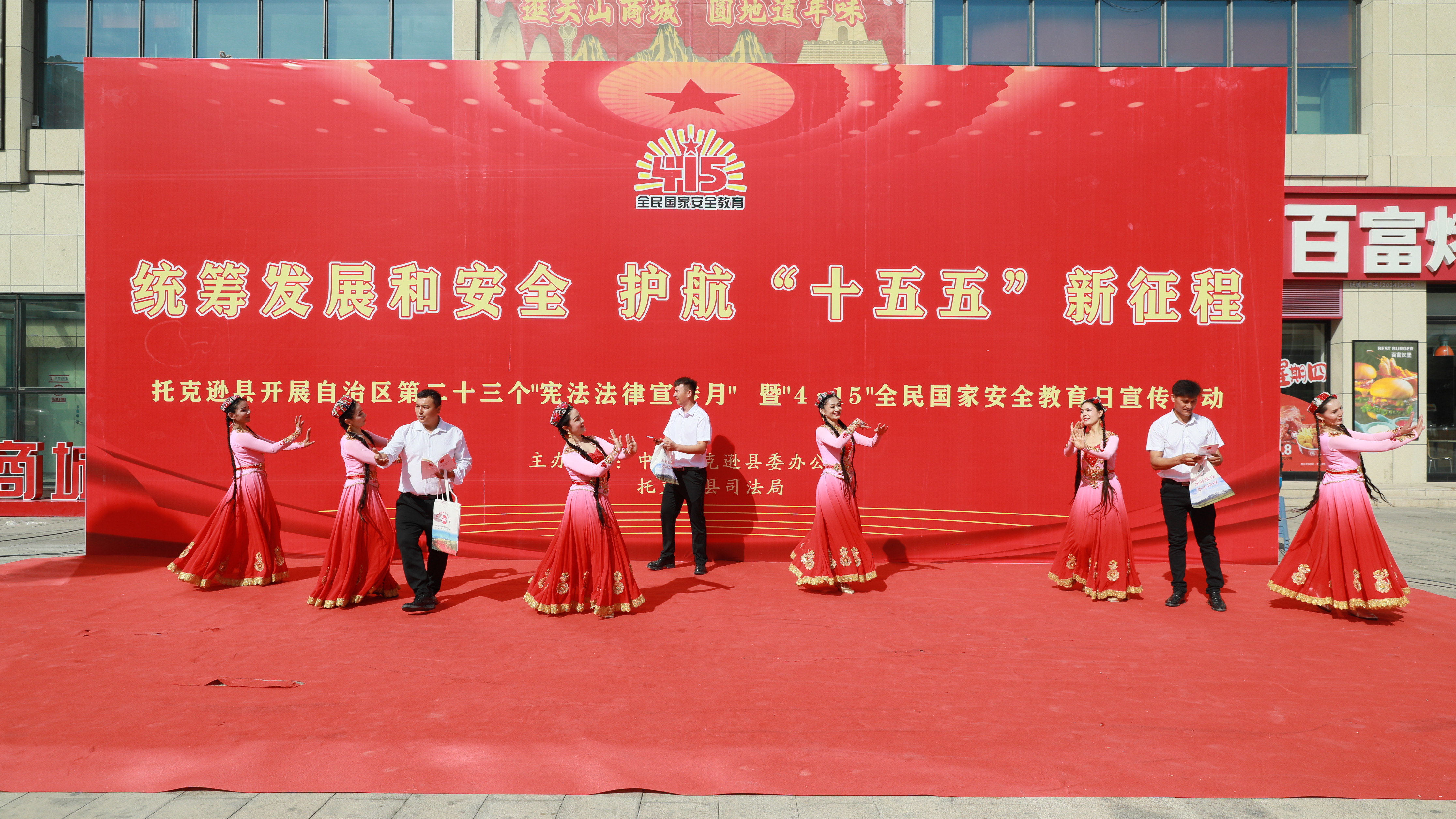 4月15日,托克逊县举行自治区第二十三个“宪法法律宣传月”集中宣传教育活动,主题为“统筹发展和安全护航‘十五五’新征程”和“弘扬宪法精神,维护宪法权威,奋进‘十五五’新征程,建设法治新疆、平安新疆”。