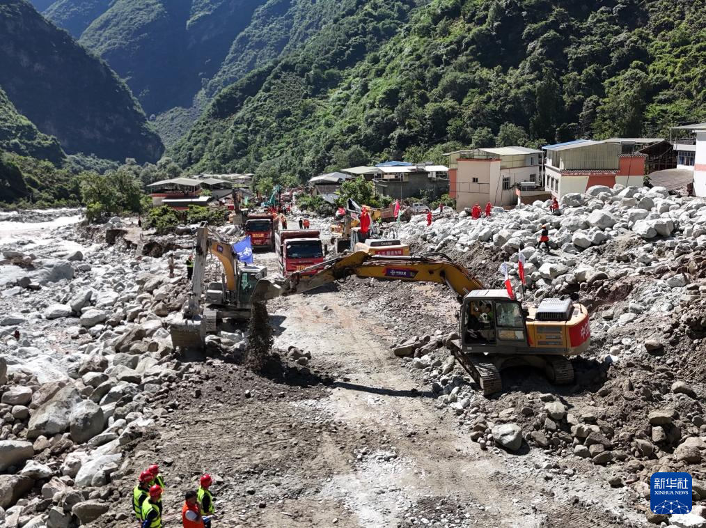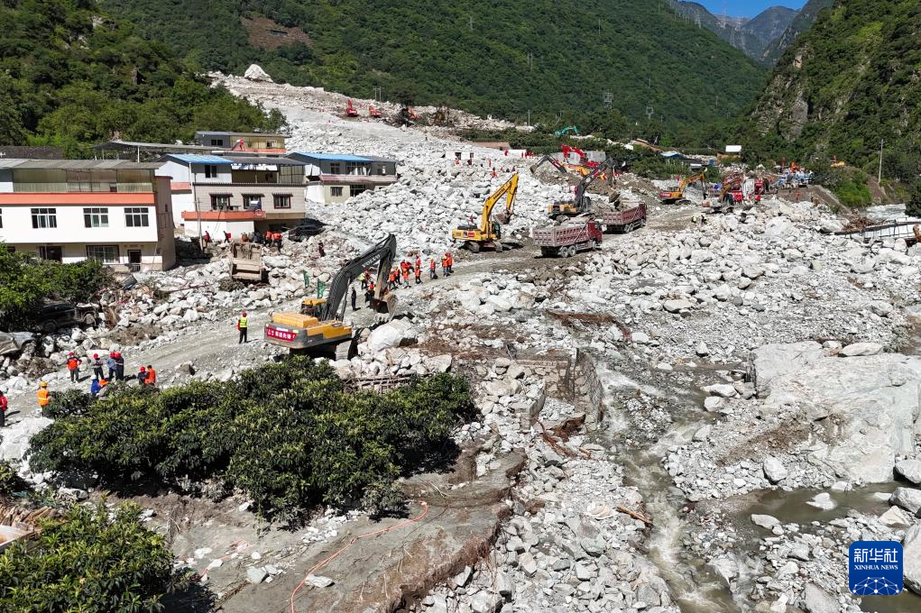 为尽快恢复道路通行,救援人员采取“双向推进,多点施工”的方式,多作业面同时施工。目前,抢通工作推进顺利,国道318线应急通道即将抢通。