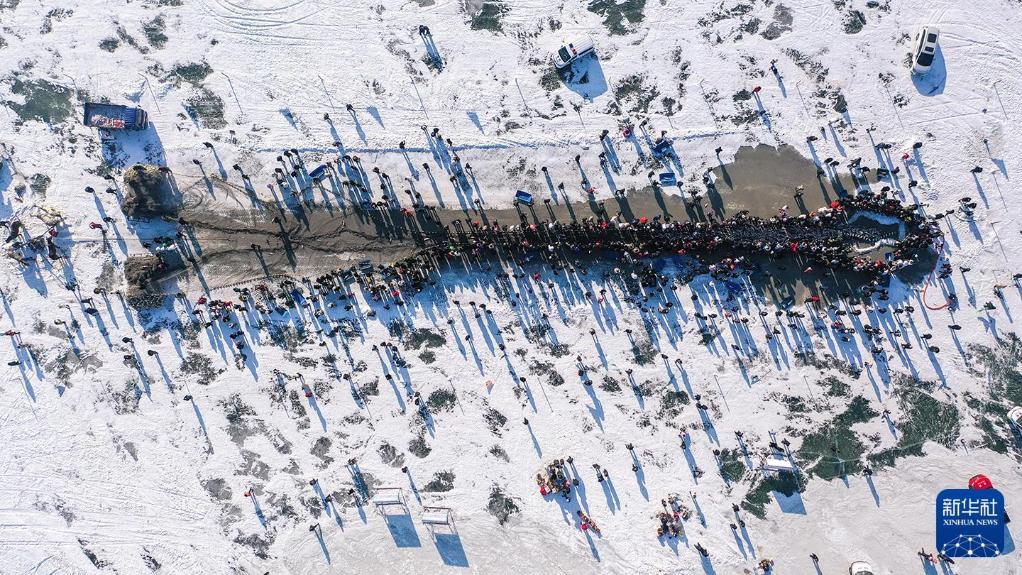 2023年12月28日,游客在吉林松原查干湖冰面上观看冬捕。新华社记者张楠摄