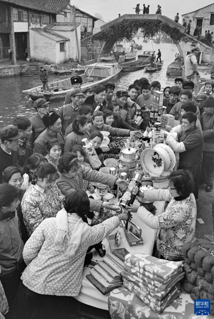 1980年,浙江绍兴柯桥农民在购买年货。新华社记者沈楚白摄
