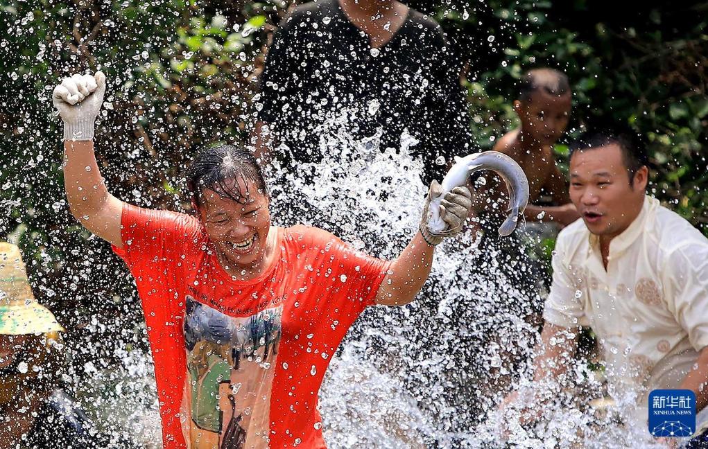 2013年8月21日,广西柳州融水县安陲乡大田村举办捉鱼活动。新华社发(龙涛摄)
