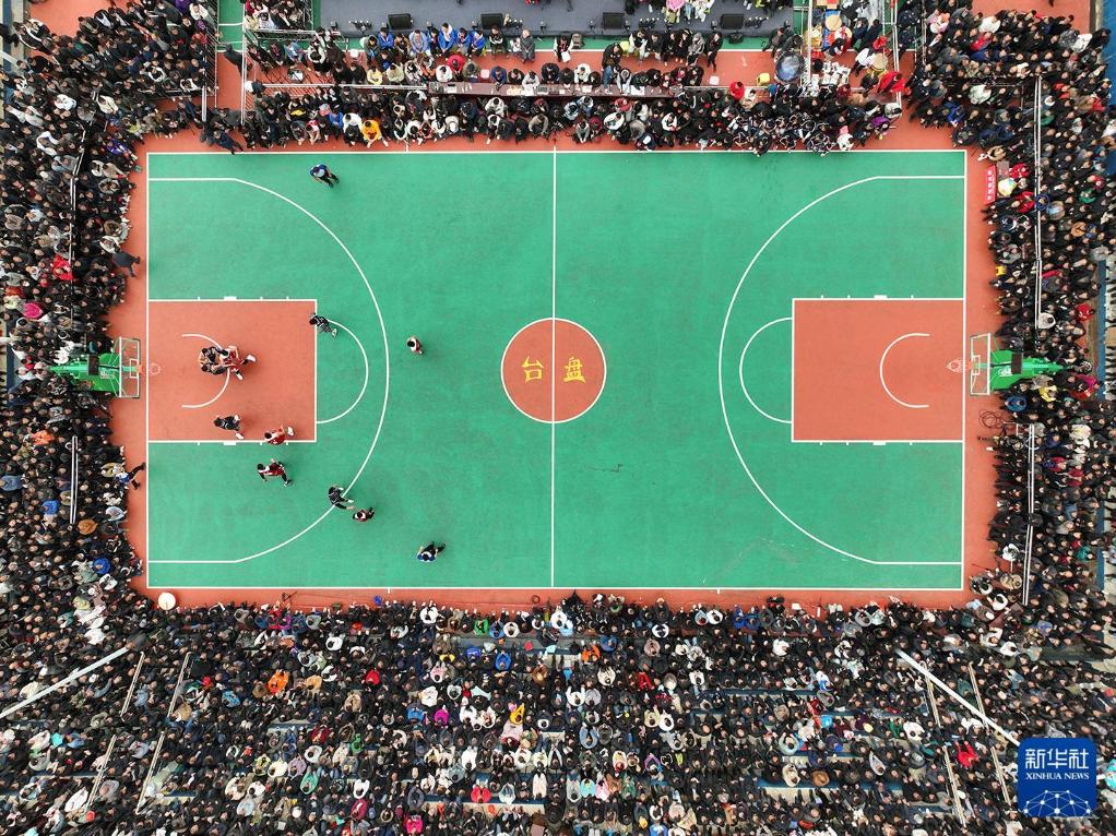 2023年3月27日,贵州台江县台盘村全省首届“美丽乡村”篮球联赛总决赛现场,参加“村BA”的选手们正在比赛。新华社记者欧东衢摄