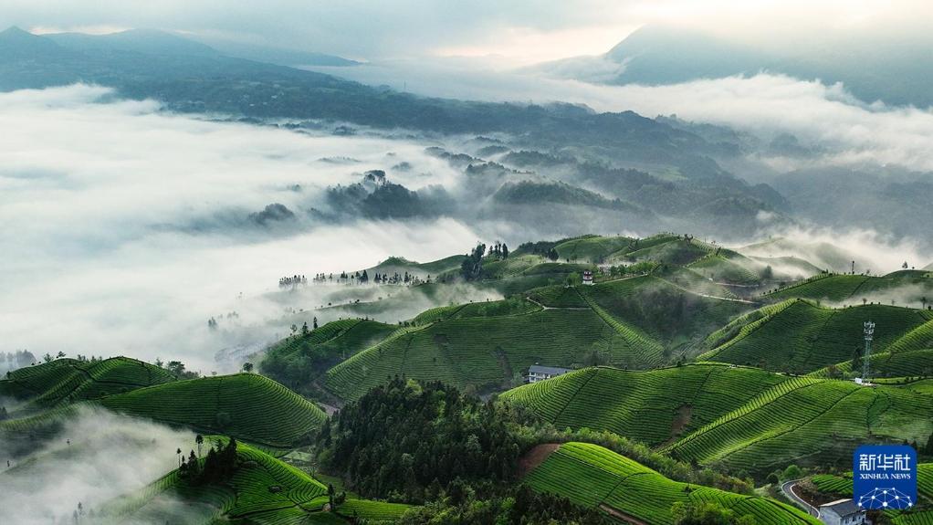 2024年4月18日在湖北鹤峰县走马镇拍摄的木耳山观光茶园。新华社发(陈明斌摄)