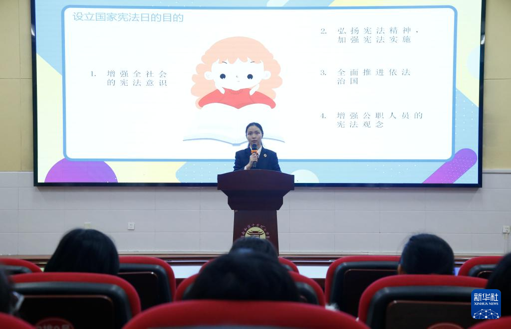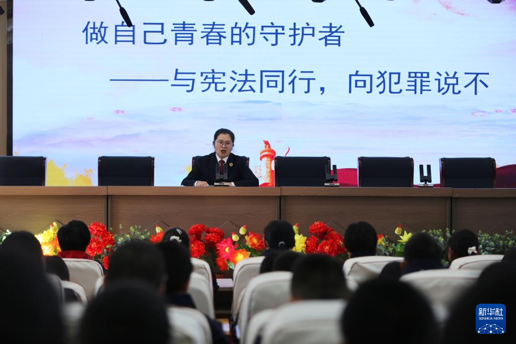 12月2日,甘肃省定西市安定区人民检察院的检察官在中华路学校进行宪法相关知识宣讲。新华社发(王克贤摄)