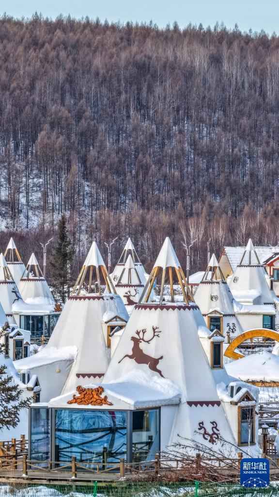 这是1月15日在根河市敖鲁古雅鄂温克民族乡拍摄的鄂温克族传统民居撮罗子(无人机照片)。新华社记者 马金瑞 摄