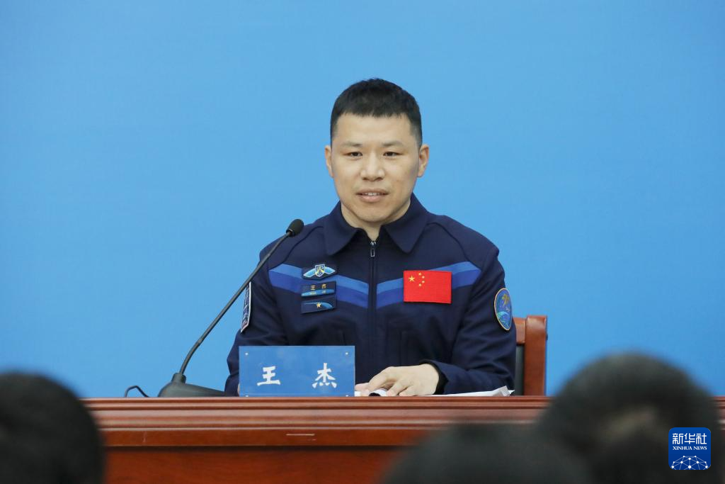 1月16日,航天员王杰在回答记者提问。新华社记者李明刚摄