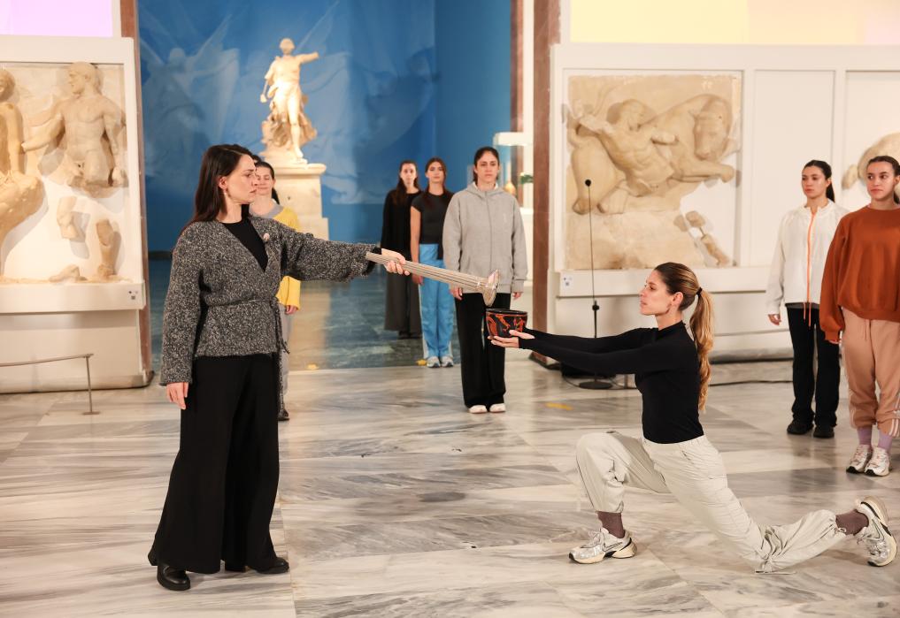 2025年11月25日,演员在彩排中。当日,2026年米兰-科尔蒂纳冬奥会圣火火种采集仪式在希腊伯罗奔尼撒半岛的古奥林匹亚举行第二次彩排。