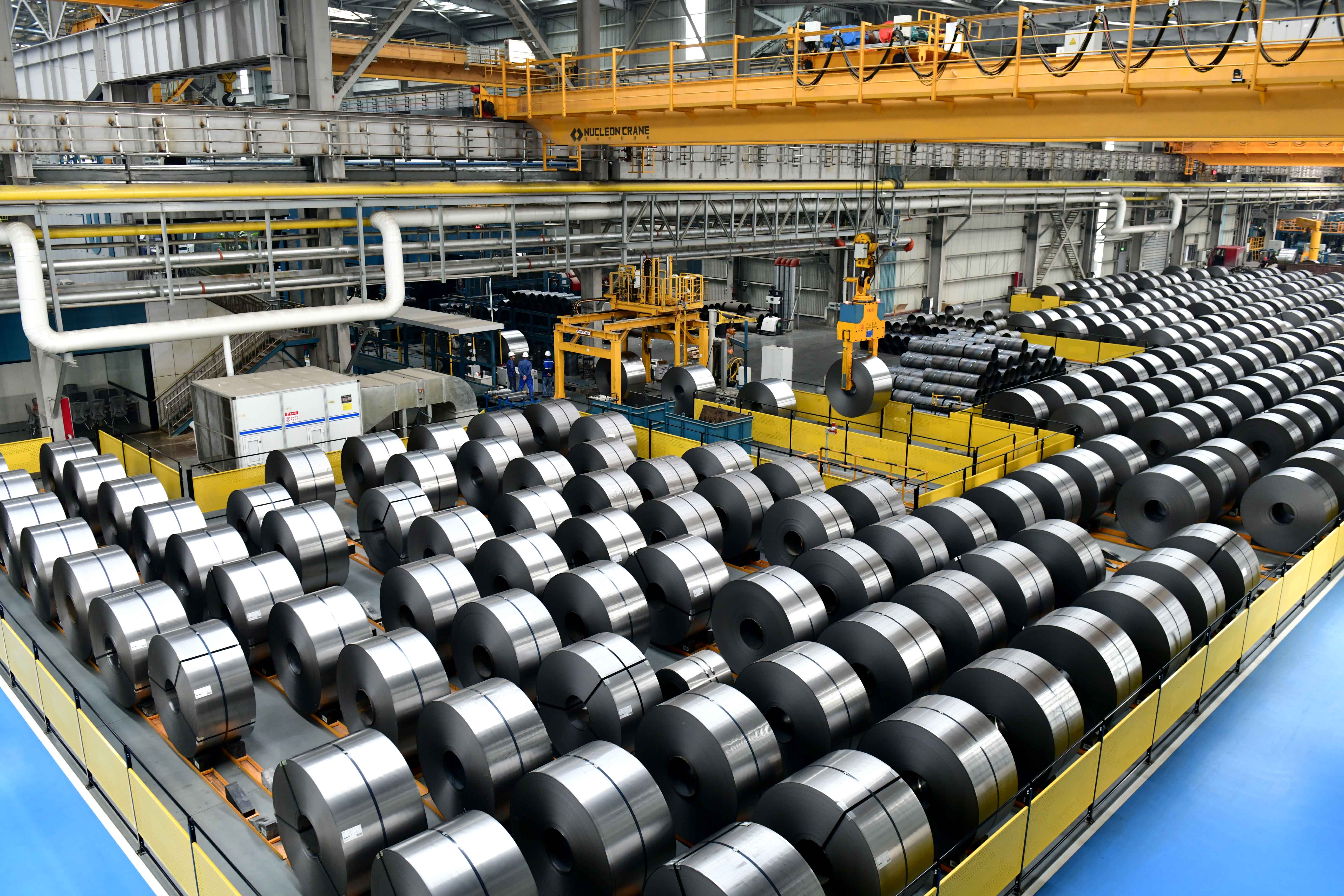 在山东日照昱岚智造产业园拍摄的钢卷生产车间(2025年5月21日摄)。新华社记者 郭绪雷 摄