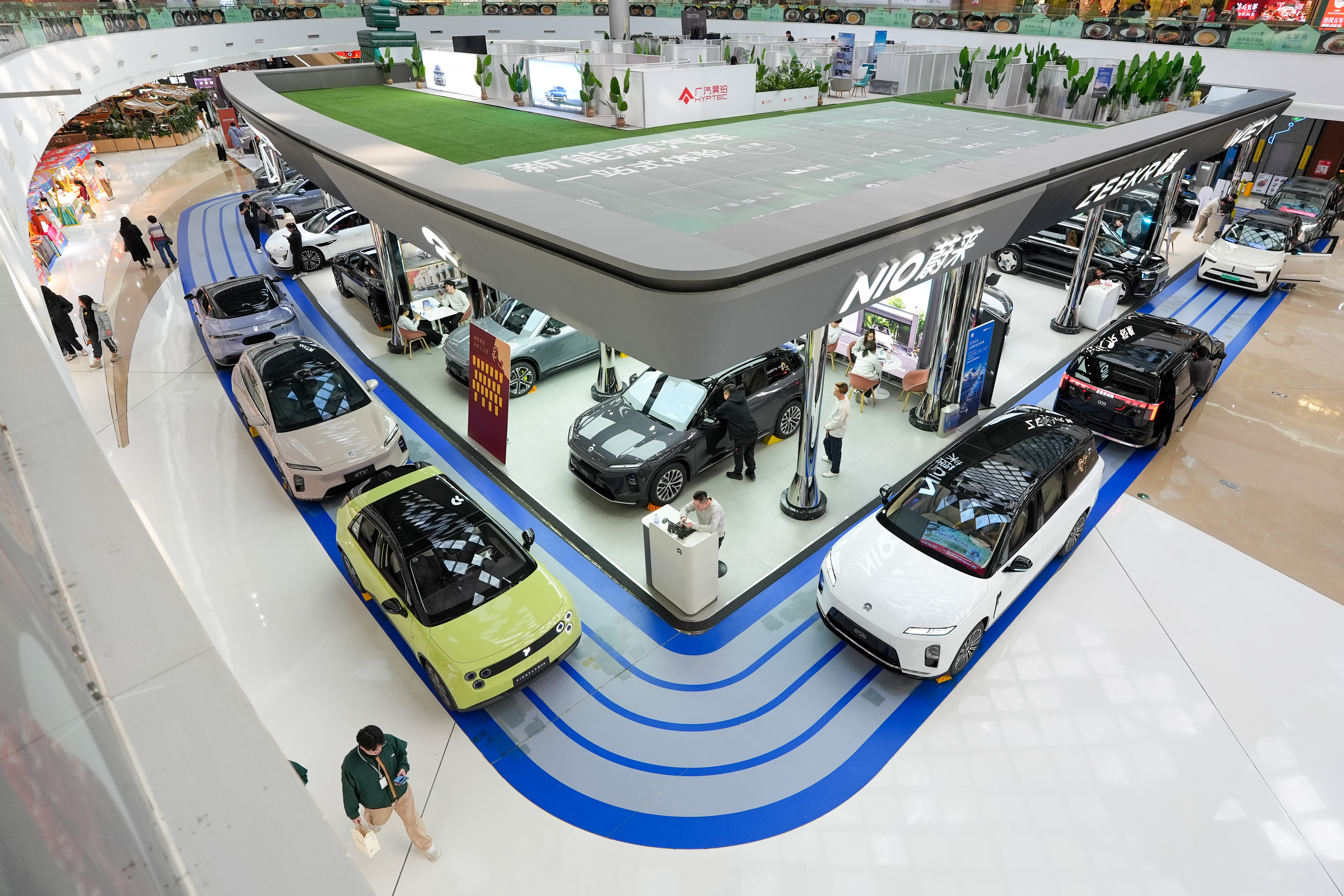 在北京市朝阳区一个商场内,市民在了解新能源汽车(2026年2月11日摄)。新华社记者 鞠焕宗 摄