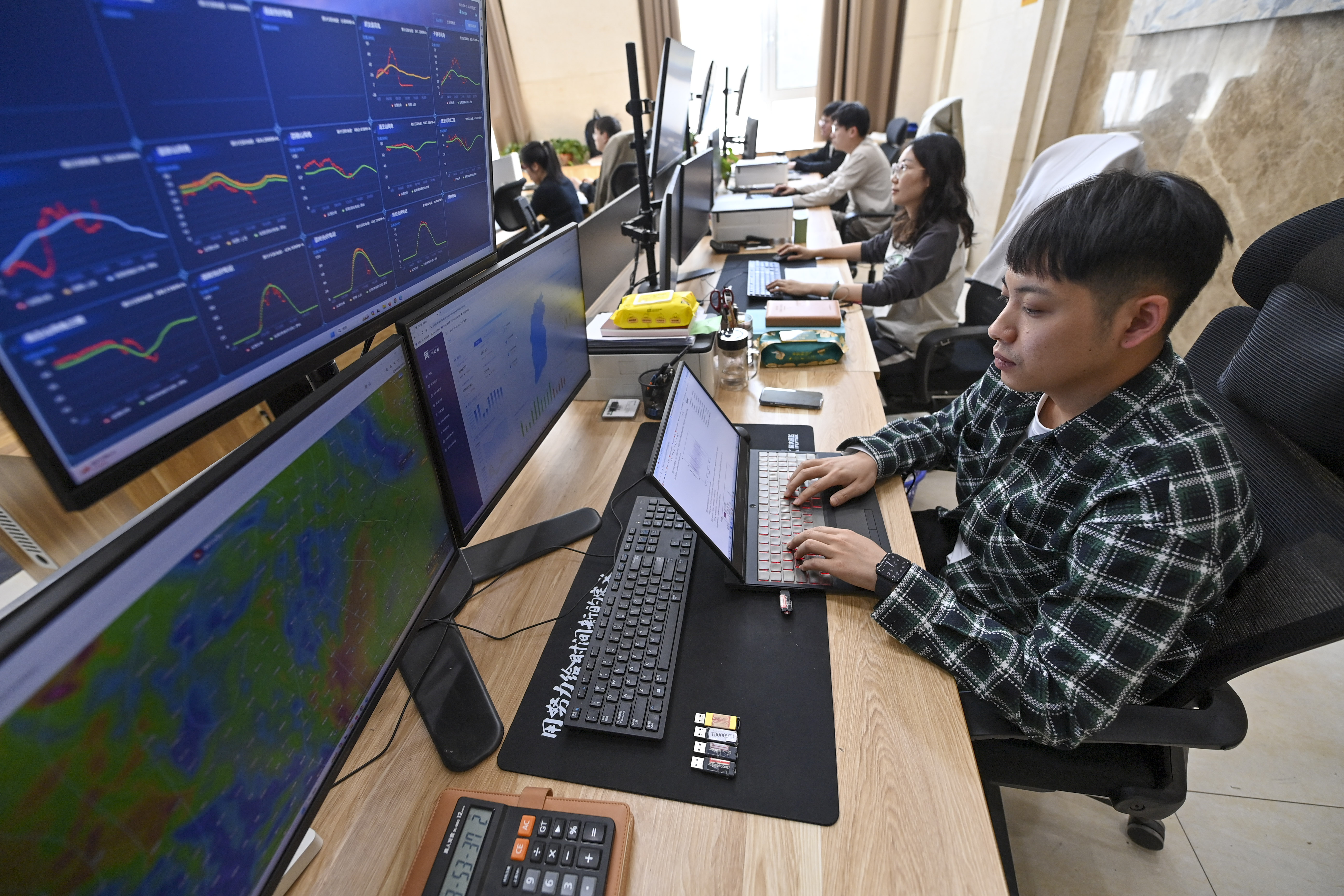 电力交易员在位于山西省太原市小店区的晋控电力一家公司内工作(2024年4月1日摄)。新华社记者 杨晨光 摄