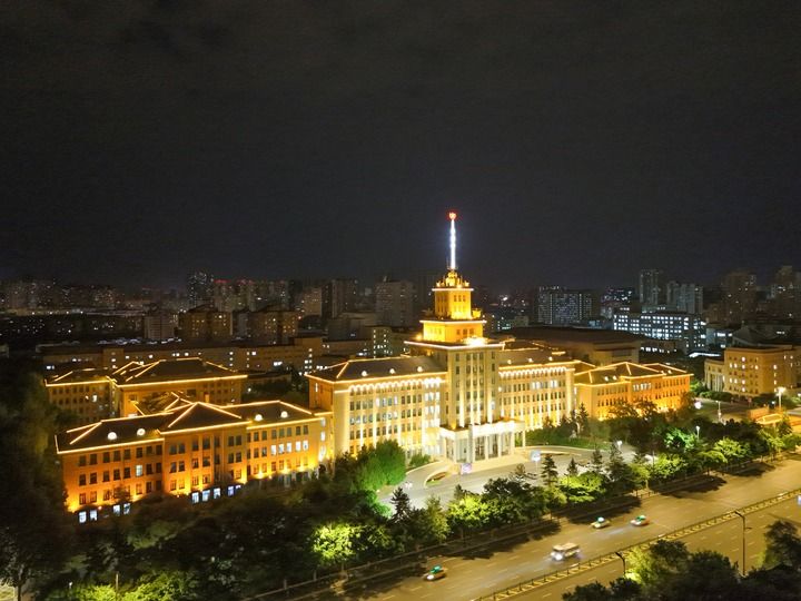 夜幕下的哈工大主楼(2025年6月8日摄)。哈尔滨工业大学党委宣传部供图
