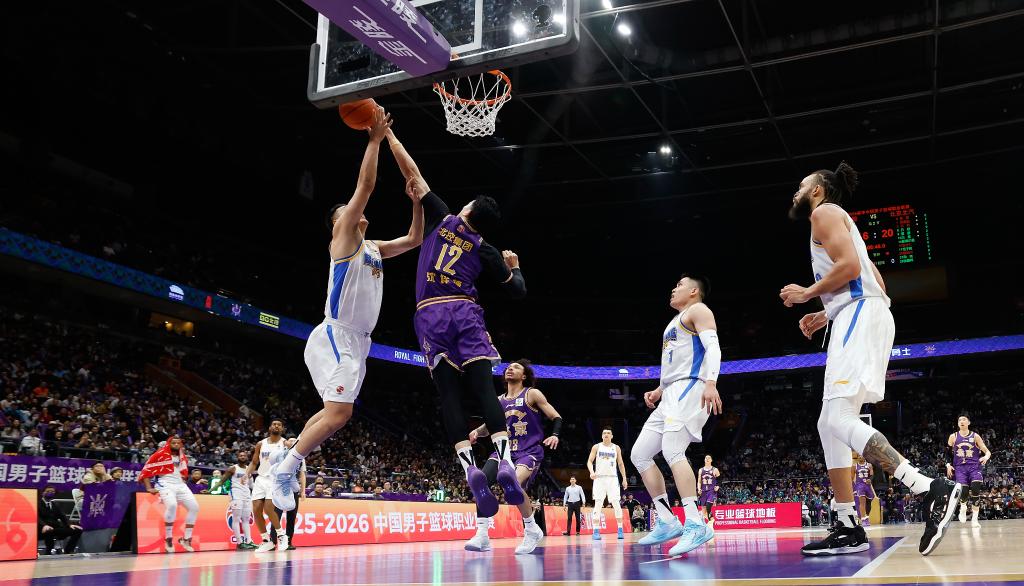 4月10日,2025-2026赛季中国男子篮球职业联赛(CBA)常规赛,北控队主场对阵北京队。新华社记者王丽莉摄