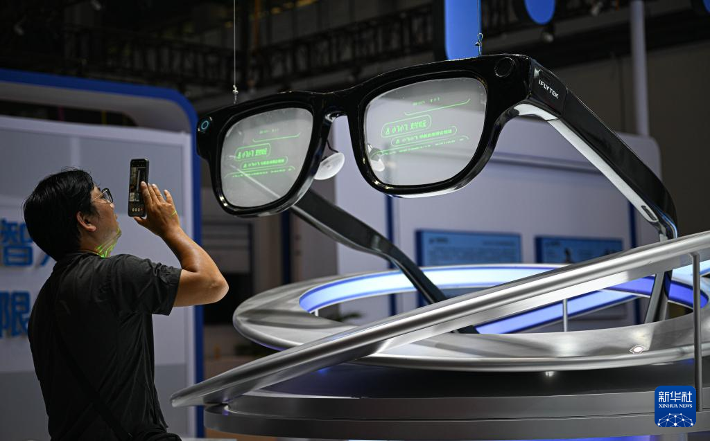 4月10日在第六届消博会主会场拍摄的AI眼镜模型。新华社记者蒲晓旭摄