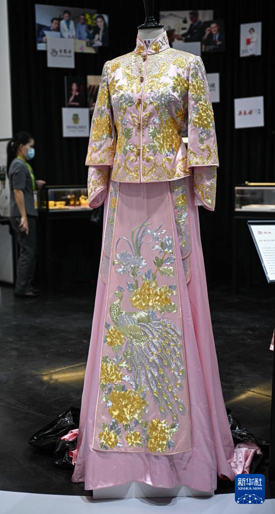 4月11日在第六届消博会主宾省——上海展台拍摄的旗袍。新华社记者蒲晓旭摄