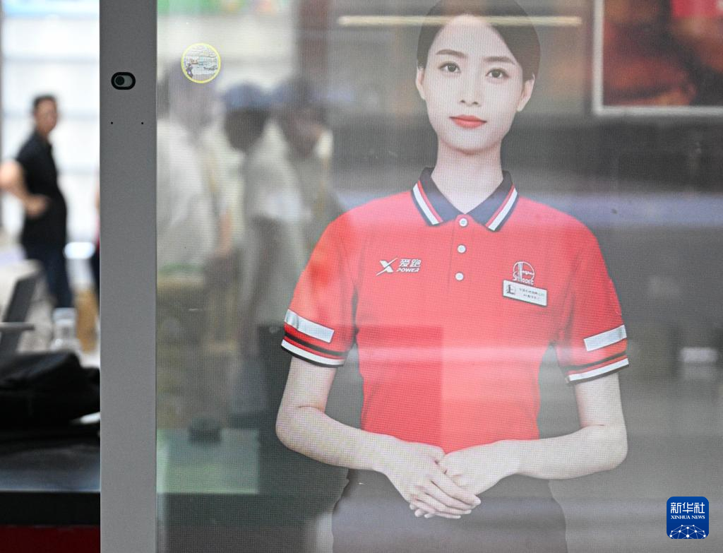 4月11日在第六届消博会主会场拍摄的中国石化数字员工。新华社记者蒲晓旭摄