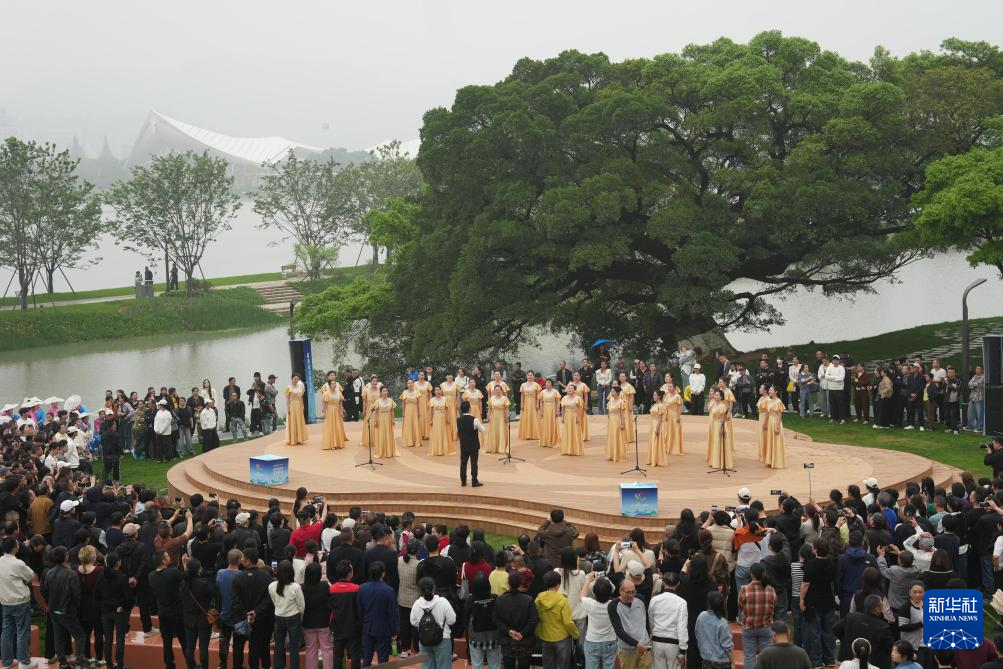 4月15日,游客在温州园博园省市城市展园观看文艺表演。新华社记者 黄宗治 摄