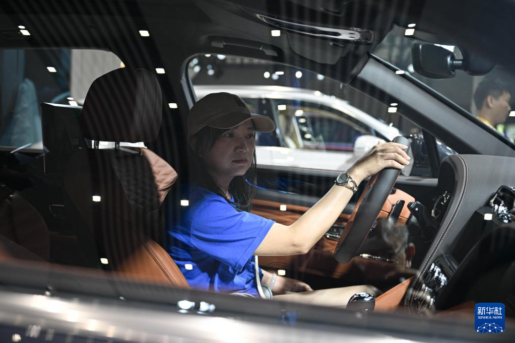 4月16日,观众在第六届消博会现场体验英国宾利汽车。新华社记者 蒲晓旭 摄