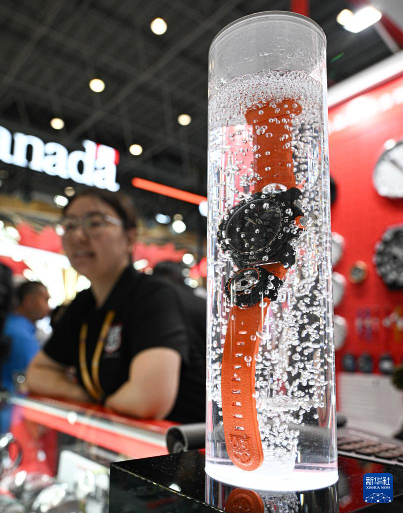 4月16日在第六届消博会瑞士展台拍摄的手表。新华社记者 蒲晓旭 摄
