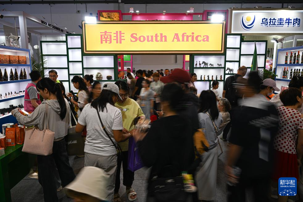 4月16日,第六届消博会南非馆人头攒动。新华社记者 蒲晓旭 摄