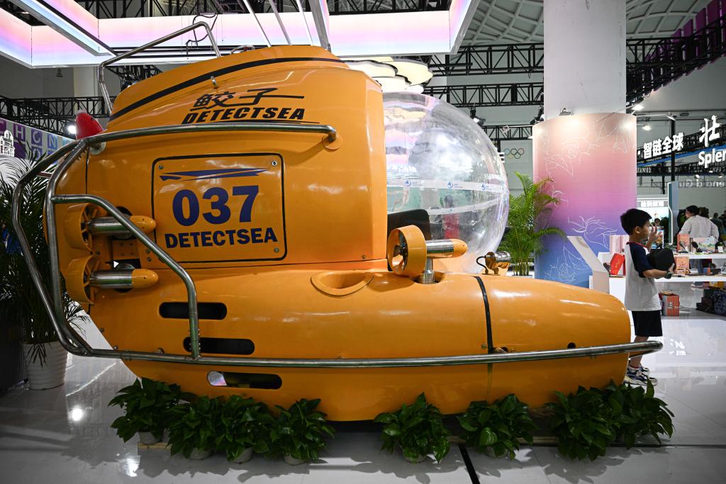 4月18日在第六届消博会重庆展台拍摄的“鲛子”号载人潜水艇。新华社记者 蒲晓旭 摄