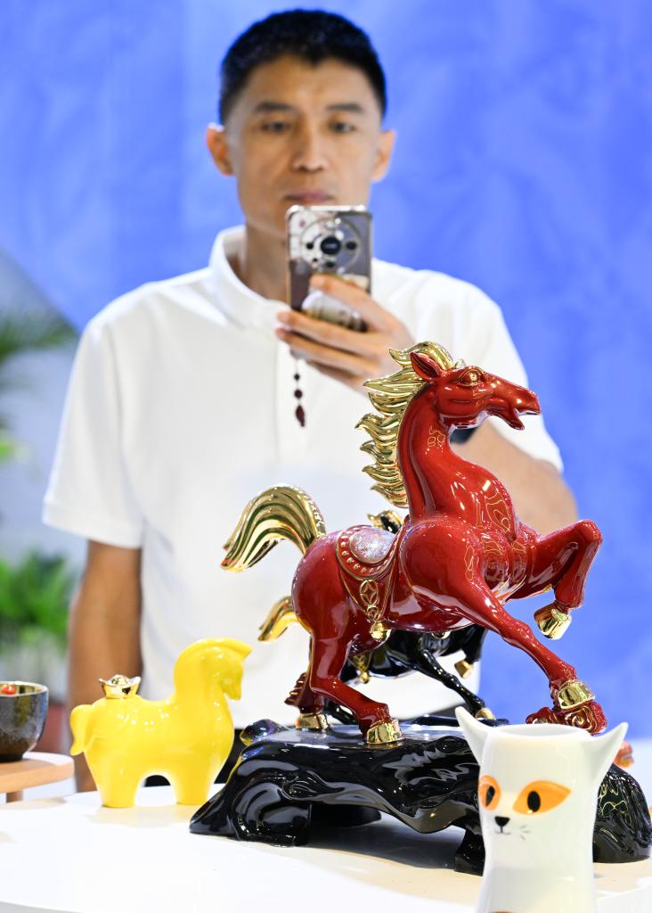 4月18日,参观者在第六届消博会现场拍摄展品。新华社记者 杨冠宇 摄