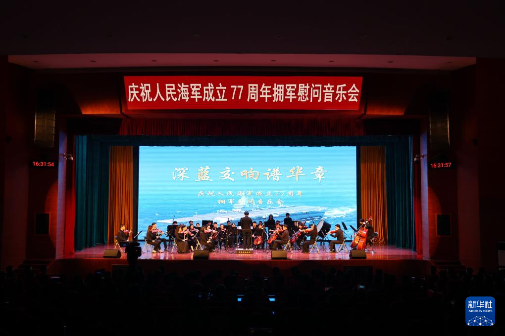 4月17日,海军指挥学院组织拥军慰问音乐会,庆祝海军成立77周年。新华社发(邱淑群 摄)