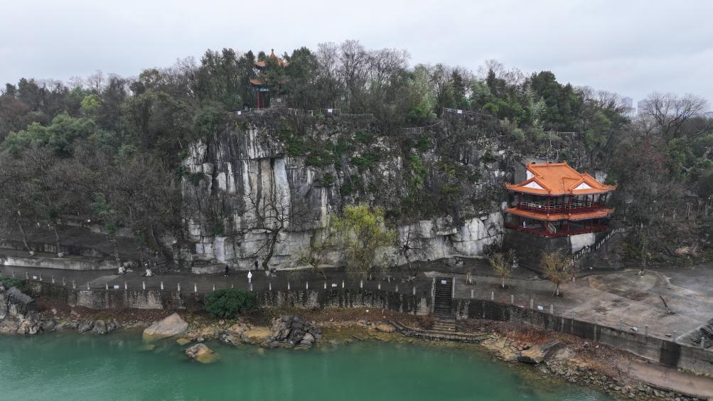 这是在永州市祁阳市浯溪碑林风景名胜区拍摄的摩崖石刻(无人机照片)。新华社记者陈振海摄