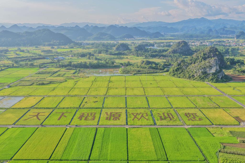这是在永州市道县玉蟾岩万年稻种发现地周边拍摄的稻田“彩绘画”(无人机照片,2025年7月24日摄)。新华社发(蒋克青摄)