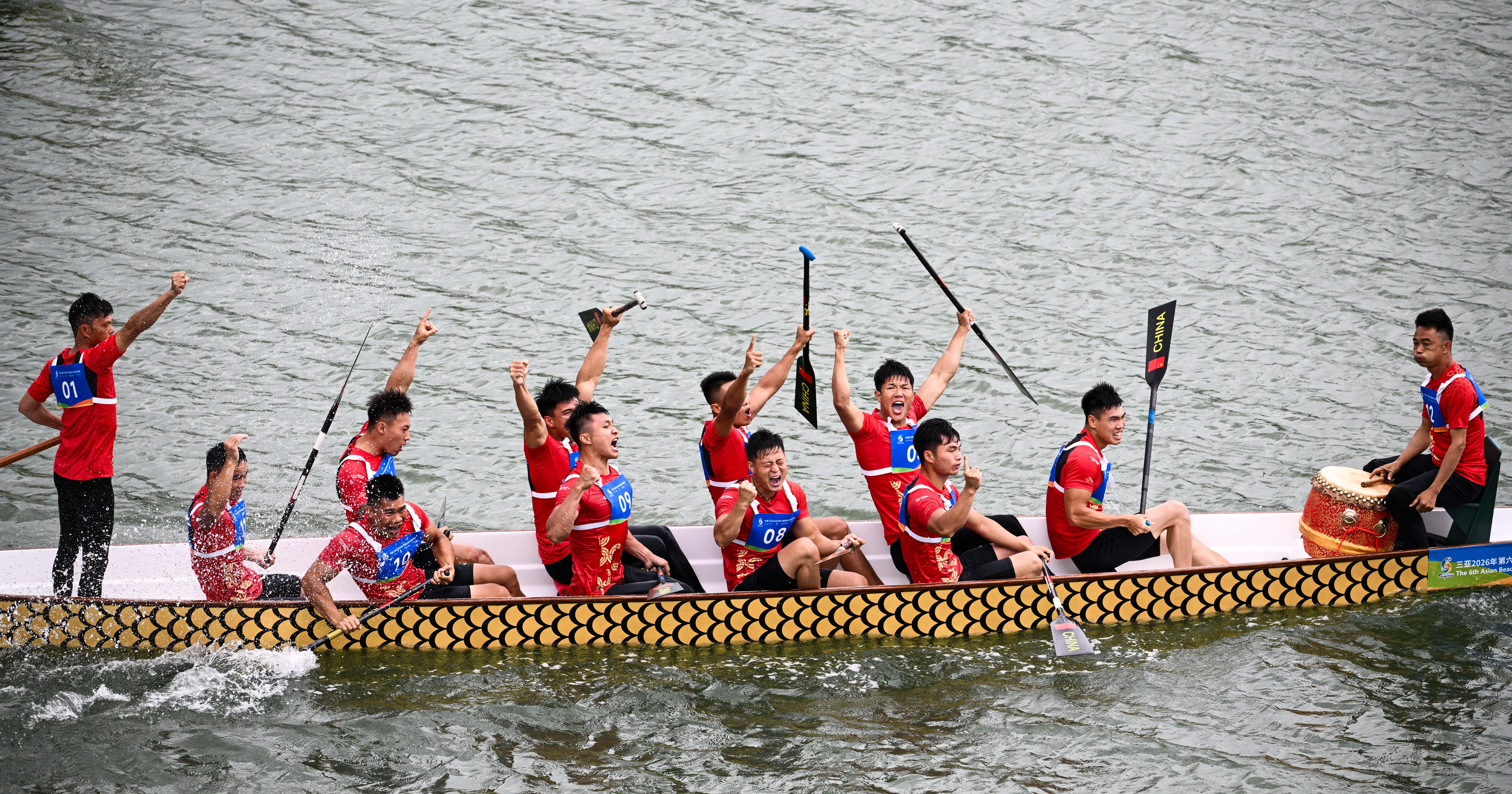 本届亚沙会首次引入龙舟100米直道赛。当日上午,中国女队用时28秒260,力压越南队率先冲线。中国男队则以24秒076问鼎男子组比赛,夺得队史首枚亚沙会龙舟男子项目金牌。
