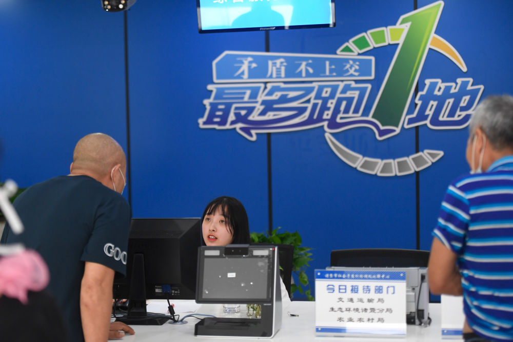 群众在浙江省诸暨市社会矛盾纠纷调处化解中心综合受理窗口咨询(2020年7月16日摄)。新华社记者黄宗治摄