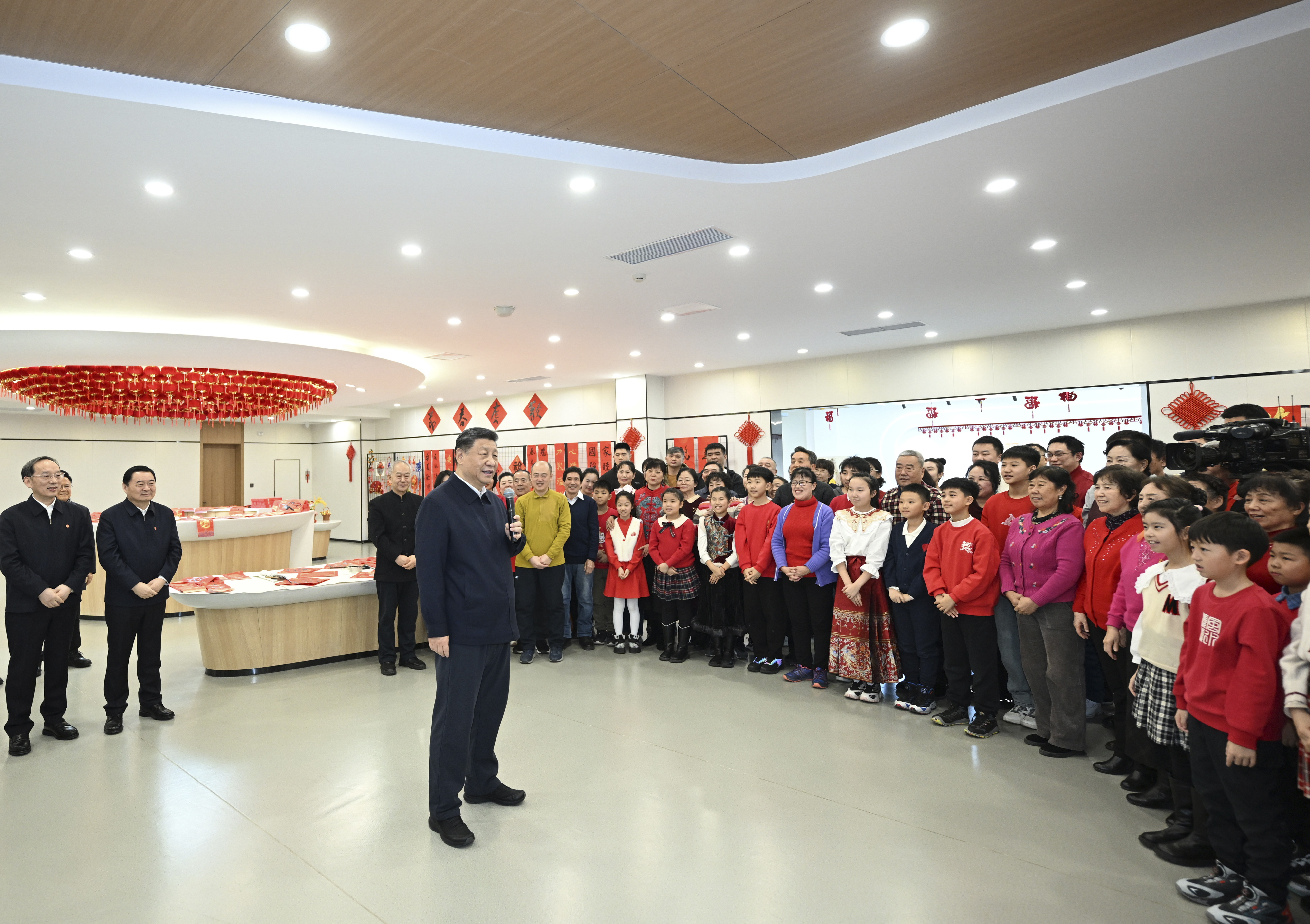 这是2025年1月23日上午,习近平总书记在沈阳大东区长安街道长安小区社区党群服务中心考察时,向全国各族人民和香港同胞、澳门同胞、台湾同胞、海外侨胞致以美好的新春祝福。新华社记者 谢环驰 摄