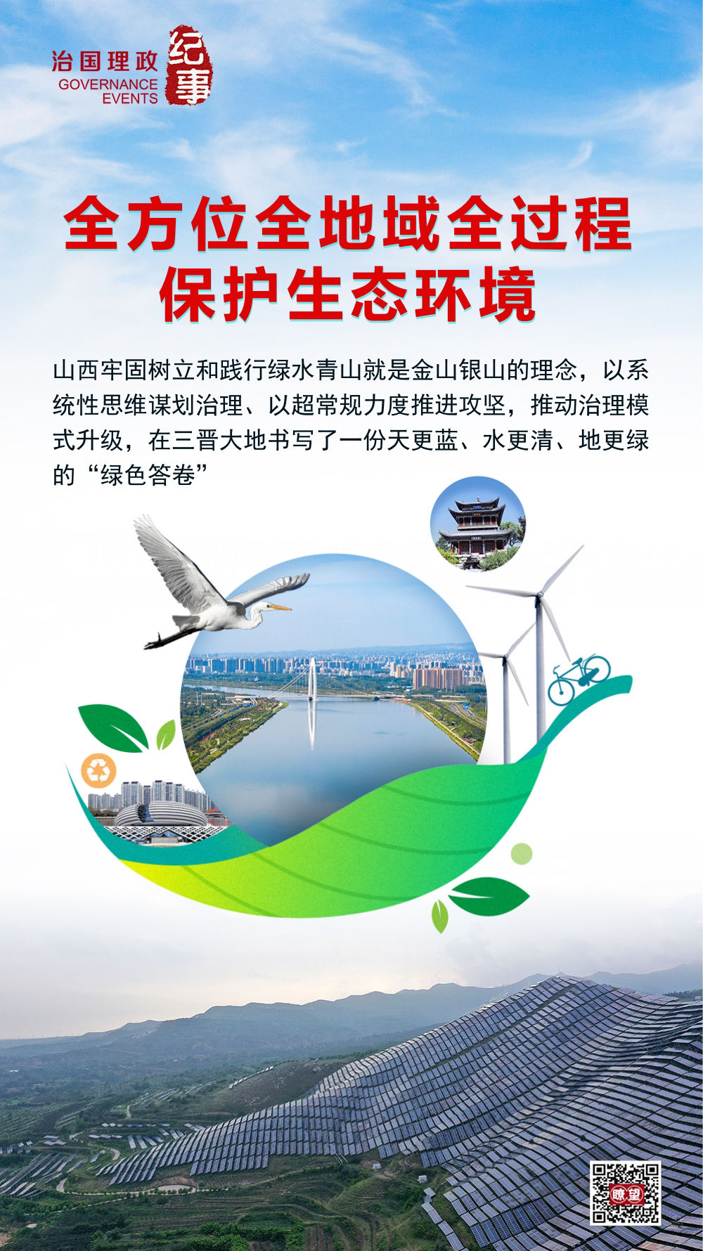 面对严峻形势,山西牢固树立和践行绿水青山就是金山银山的理念,以系统性思维谋划治理、以超常规力度推进攻坚,推动治理模式升级,在三晋大地书写了一份天更蓝、水更清、地更绿的“绿色答卷”。