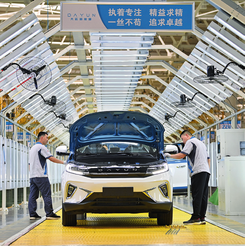 在位于山西省运城市经济技术开发区的大运新能源汽车生产基地,新能源汽车准备下线(2024年6月13日摄)杨晨光摄/本刊