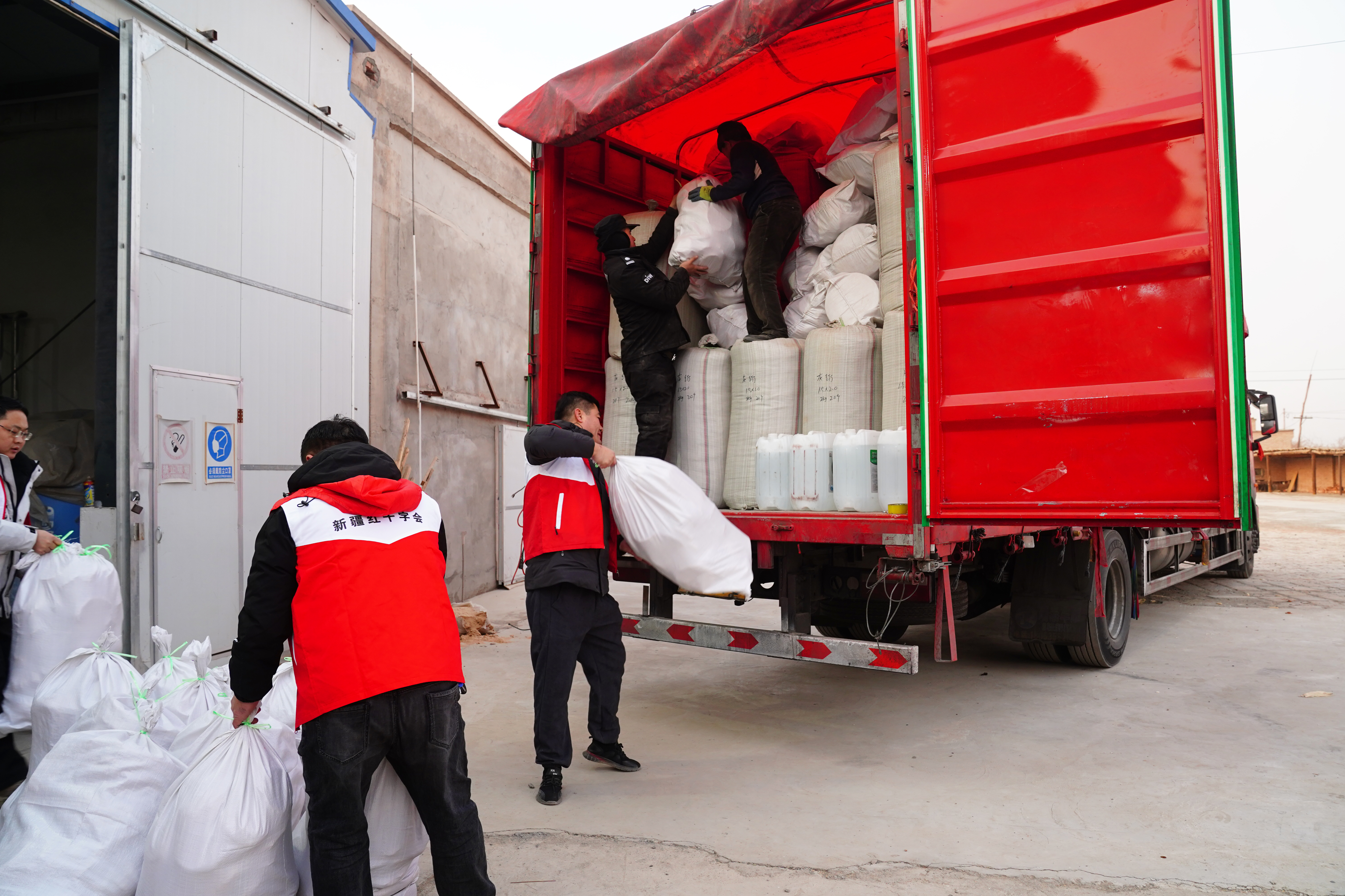 志愿者装载救灾物资。吐鲁番市融媒体中心记者 刘字昂 摄