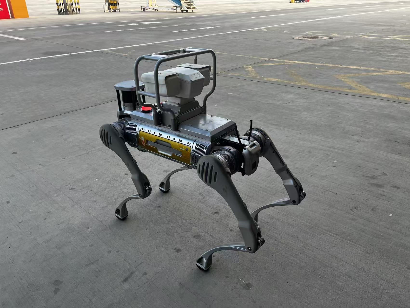 这台机器狗智能化程度高,能自主规划巡视路线,沿机场围界不间断巡逻。它装备了先进的传感器和高清摄像头,无论昼夜,都能清晰监测围界周边情况,及时发现非法入侵、动物闯入等安全隐患。一旦发现异常,机器狗会立即报警,并将图像和数据实时传回监控中心,便于工作人员迅速响应。