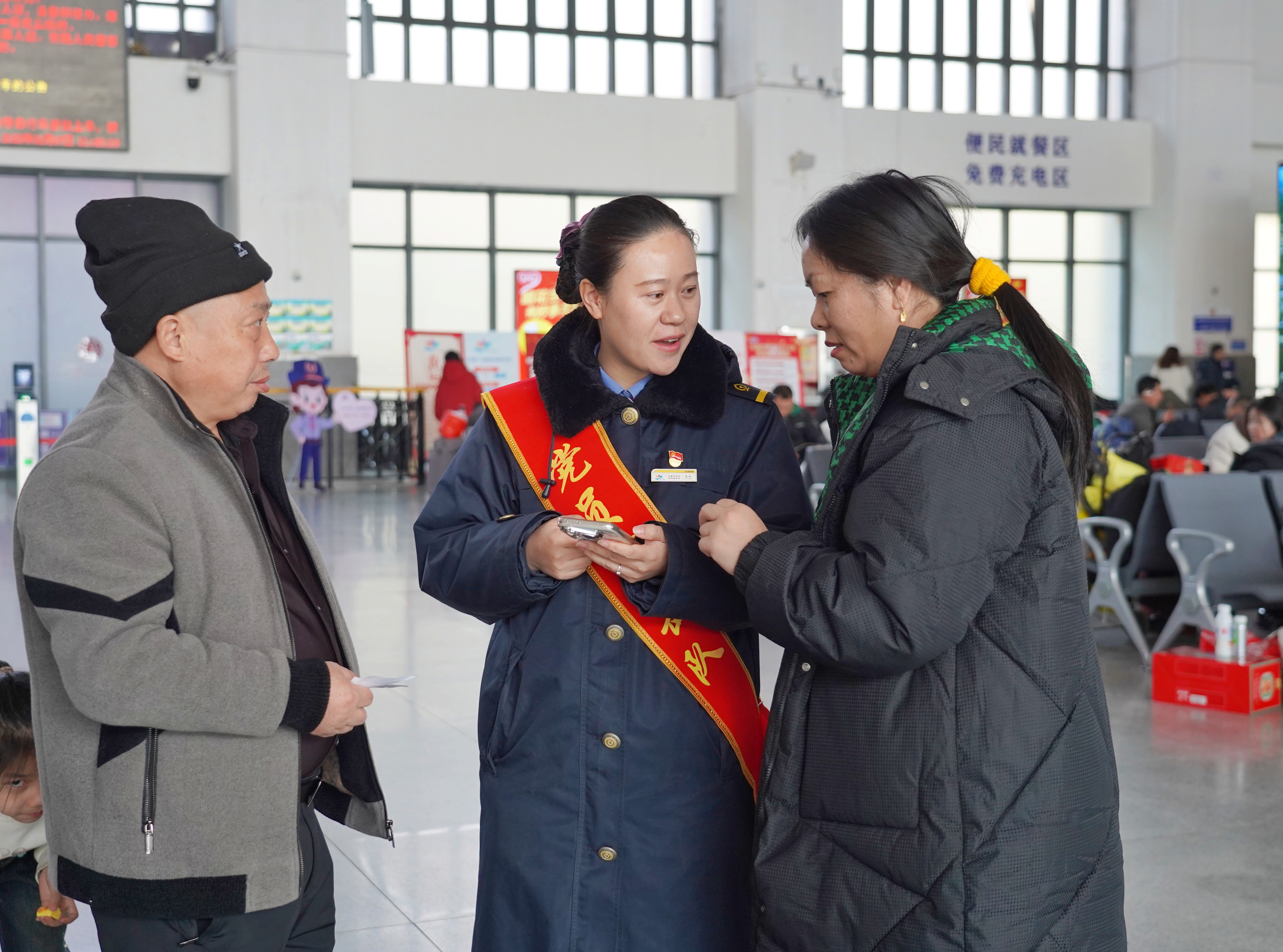 2月6日,站内候车厅满是旅客,LED屏滚动信息,工作人员贴心服务。客运值班员张恩涛表示,该站全力保障旅客中转换乘与安全出行。
