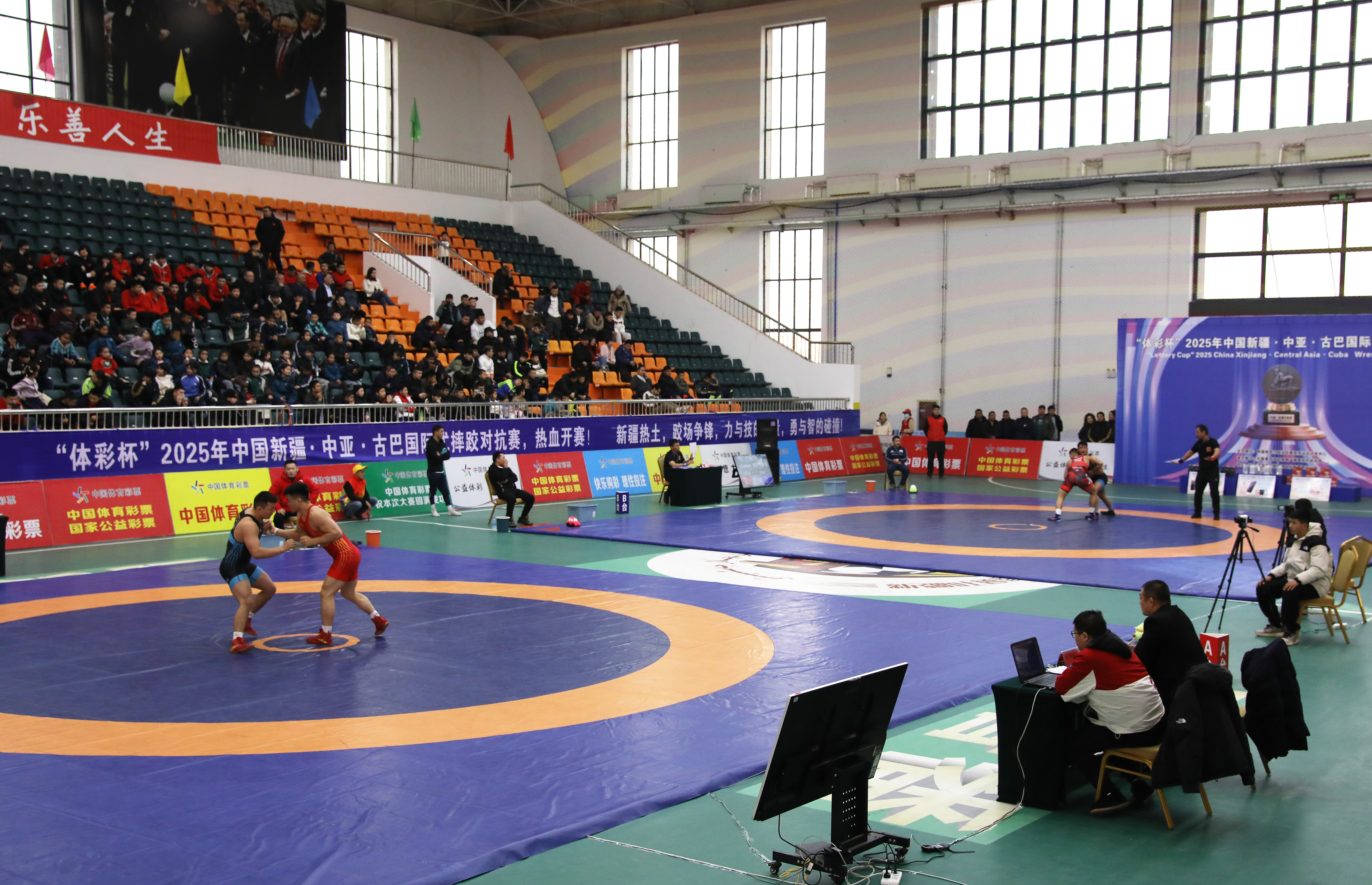 吐鲁番市融媒体中心讯(记者 刘字昂 刘宇杰)2月22日,由新疆维吾尔自治区重竞技运动训练中心主办、吐鲁番市文化体育广播电视和旅游局承办的“体彩杯”2025年中国新疆—中亚—古巴国际式摔跤对抗赛在高昌区体育馆举行。