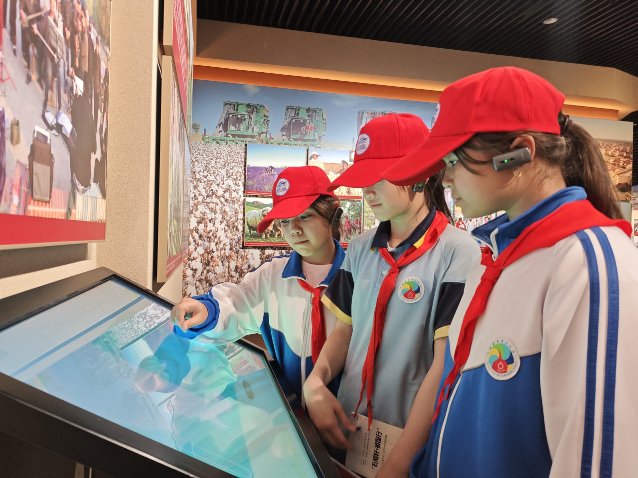 12日下午,营员们在新疆兵团军垦博物馆参观。