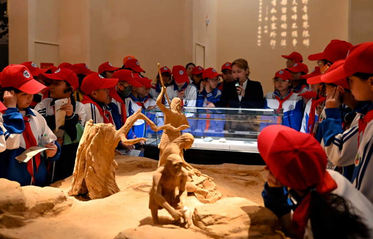 13日上午,营员们在乌鲁木齐市博物馆参观。