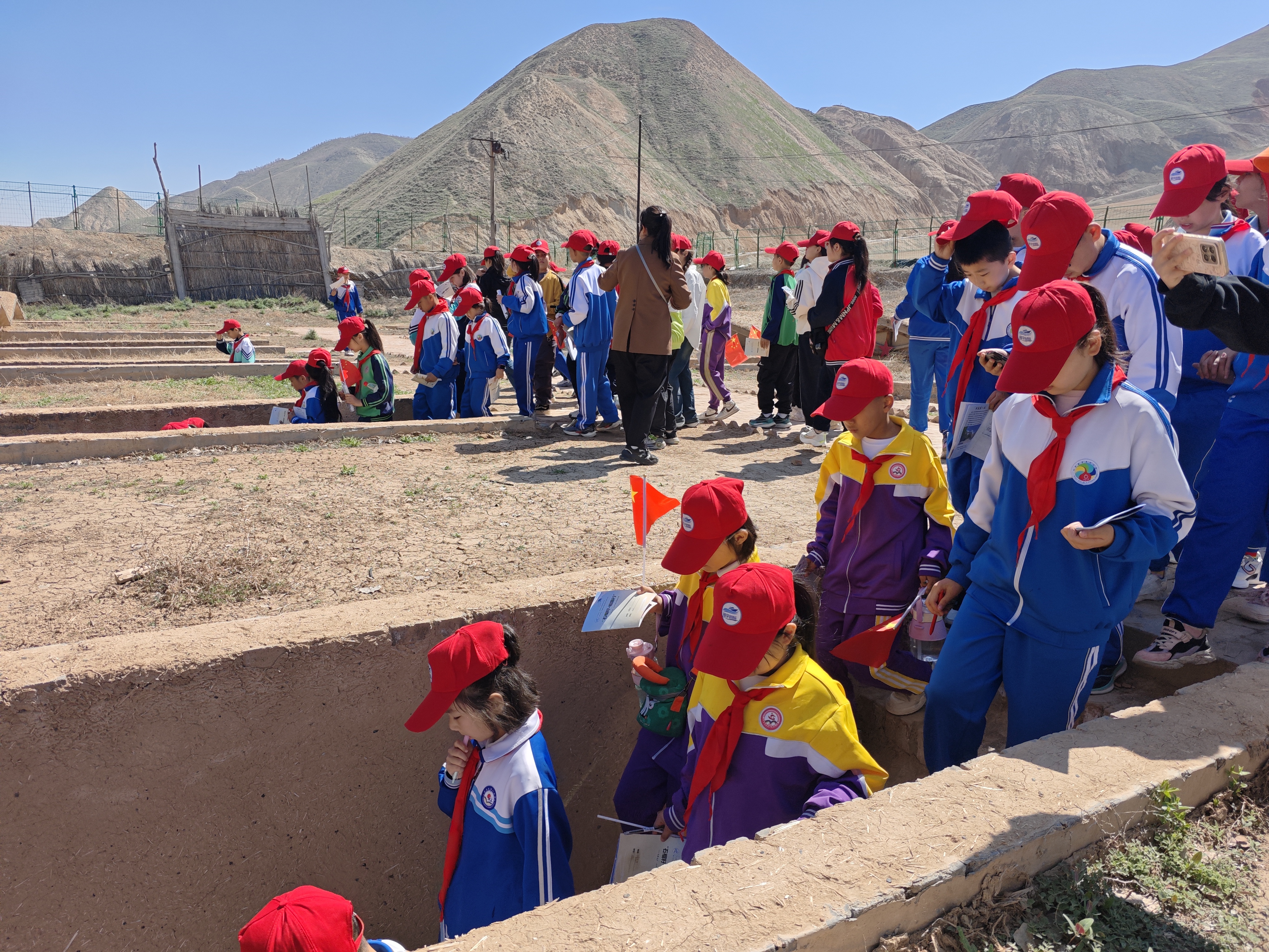 12日上午,营员们在石河子市军垦第一连参观地窝子。